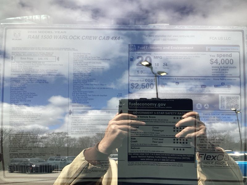 Diamond Black Crystal Pearlcoat 2026 1500 Ram Warlock 4D Crew Cab 4WD 8-Speed Automatic 3.0L I6 Price includes: $2000 - 2026 National SFS Lease Loyalty Bonus Cash . Exp. 04/30/2026 $3500 - 2026 National Retail Bonus Cash . Exp. 04/30/2026 $500 - 2026 National 2026 First Responder Bonus Cash . Exp. 01/04/2027