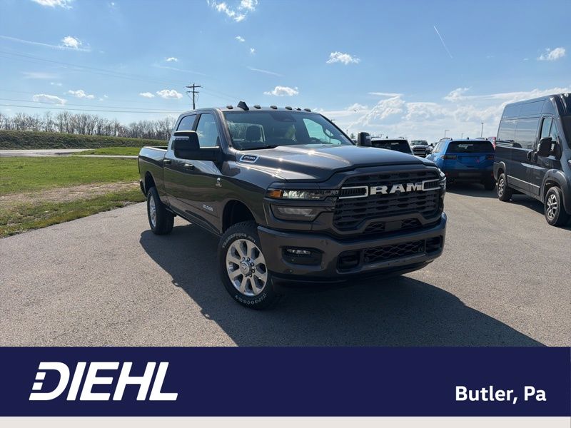 Big Horn Level 1 Plus Equipment Group (12" Touchscreen Display, 2 Way Rear Headrest Seat, 2nd Row in Floor Storage Bins, 4 Way Front Headrests, 40/20/40 Split Bench Seat, 4G LTE Wi-Fi Hot Spot, 9 Alpine Speakers with Subwoofer, Air Conditioning ATC with Dual Zone Control, Alexa Built-in, Anti-Spin Differential Rear Axle, Apple CarPlay, Auto Power-Folding Mirrors, Auto-Dimming Rear-View Mirror, Black Exterior Mirrors, Connected Travel and Traffic Services, Connectivity - US/Canada, Disassociated Touchscreen Display, Dual Glove Boxes, Emergency Vehicle Alert System (EVAS), Exterior Mirrors Courtesy Lamps, Exterior Mirrors with Heating Element, Exterior Mirrors with Supplemental Signals, Foam Bottle Insert (door Trim Panel), Folding Flat Load Floor Storage, Footwell Courtesy Lamp, For Details, Visit DriveUconnect.com, For More Info, Call 800-643-2112, Forward and Reverse Utility Lights, Front Armrest with Cupholders, Front Center Seat Cushion Storage, Front Seat Back Map Pockets, Global Telematics Box Module, Glove Box Lamp, Google Android Auto, GPS Antenna Input, GPS Navigation, HD Radio, Integrated Voice Command with Bluetooth, LED Bed Lighting, Locking Lower Glove Box, Luxury Steering Wheel, Manual Adjust 4-Way Front Passenger Seat, Mirror Running Lights, MOPAR Deployable Bed Step, MOPAR Spray in Bedliner, Off-Road Info Pages, Power 2-Way Driver Lumbar Adjust, Power Adjust 8-Way Driver Seat, Power Adjust Mirrors, Power Heated Folding Telescopic Mirrors, Power Telescoping Mirrors, Power-Adjustable Convex Aux Mirrors, Premium Cloth 40/20/40 Bench Seat, Radio: Uconnect 5 Navigation with 12.0" Display, Rear 60/40 Folding Seat, Rear Dome with on/Off Switch Lamp, Remote Start System, Remote USB Port - Charge Only, Selectable Tire Fill Alert, SiriusXM Radio Service, SiriusXM with 360L, Steering Wheel Mounted Audio Controls, Storage Tray, and Trailer Tow Pages), Cold Weather Group (Engine Block Heater and MOPAR Winter Front Grille Cover), Heated Seats and Wheel Group (Heated Front Seats and Heated Steering Wheel), Quick Order Package 24Z Big Horn, Sport Appearance Package (Black Interior Accents, Body Color Grille-Surround, Painted Front Bumper, Painted Rear Bumper, and Sport Decal), 20" x 8.0" Polished Aluminum Wheels, 4-Wheel Disc Brakes, 5th Wheel/Gooseneck Towing Prep Group, 6 Speakers, ABS brakes, Air Conditioning, Alloy wheels, AM/FM radio: SiriusXM, Apple CarPlay/Android Auto, Brake assist, Bumpers: chrome, Center Hub, Clearance Lamps, Cloth 40/20/40 Bench Seat, Compass, Dash Pass Thru Wire Circuits, Delay-off headlights, Driver door bin, Dual front impact airbags, Dual front side impact airbags, Electronic Stability Control, Front anti-roll bar, Front Center Armrest w/Storage, Front fog lights, Front reading lights, Fully automatic headlights, Heated door mirrors, Illuminated entry, Instrument Panel Mounted Auxiliary Switches, Low tire pressure warning, Manual Adjust 4-Way Driver Seat, MOPAR Front and Rear Rubber Floor Mats, Occupant sensing airbag, Outside temperature display, Overhead airbag, Overhead console, Panic alarm, ParkView Rear Back-Up Camera, Passenger door bin, Passenger vanity mirror, Power door mirrors, Power steering, Power windows, Radio data system, Radio: Uconnect 5 with 8.4" Display, Rear anti-roll bar, Rear Folding Seat, Rear seat center armrest, Rear step bumper, Rear Wheelhouse Liners, Rear window defroster, Remote keyless entry, Security system, Speed control, Tachometer, Tilt steering wheel, Traction control, Trip computer, Turn signal indicator mirrors, Variably intermittent wipers, Voltmeter, and Wheels: 18" x 8.0" Polished AluminuM. Granite Crystal Metallic Clearcoat 2026 Ram 2500 Big Horn commercial 4WD 8-Speed Automatic 6.7L I6