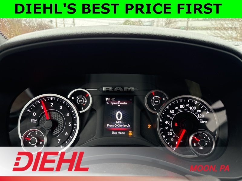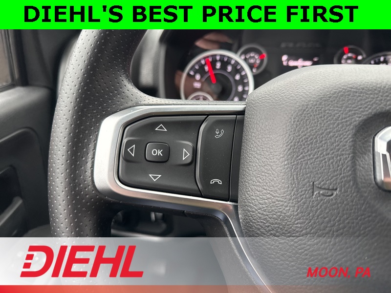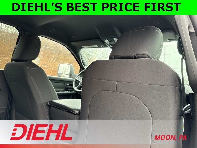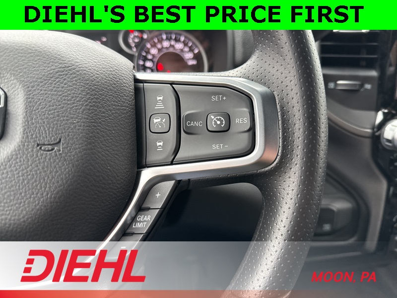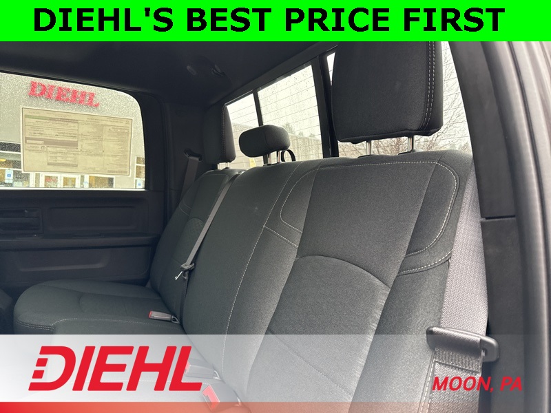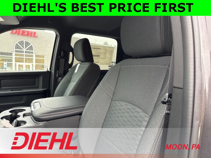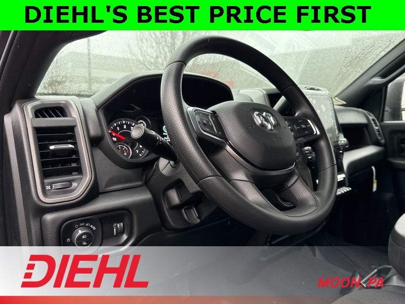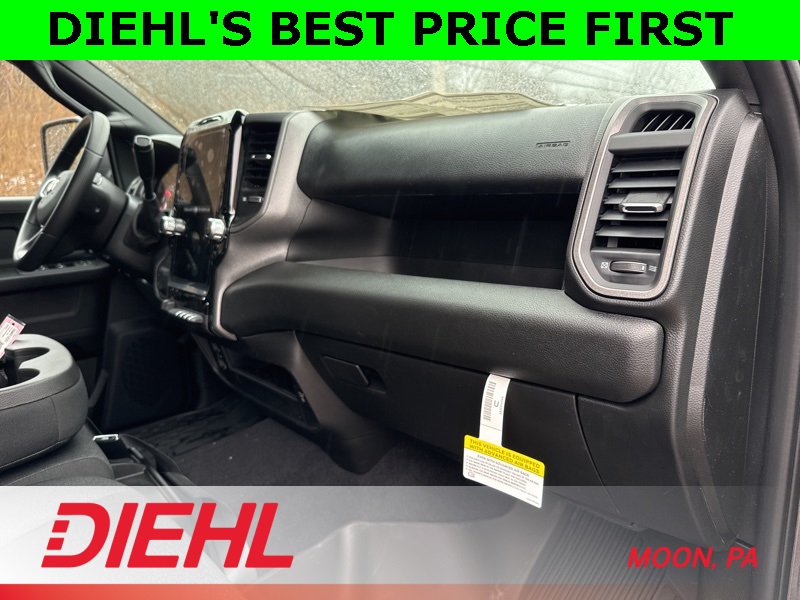 115-Volt Auxiliary Front Power Outlet, 12" Touchscreen Display, 2 Way Rear Headrest Seat, 4 Way Front Headrests, 40/20/40 Split Bench Seat, 400W Inverter, 4G LTE Wi-Fi Hot Spot, Air Conditioning ATC with Dual Zone Control, Alexa Built-in, Apple CarPlay, Auto Power-Folding Mirrors, Auto-Dimming Rear-View Mirror, Bed Convenience Group, Black Exterior Mirrors, Black Wheel Center Hub, Body Color Grille-Surround, Carpet Floor Covering, Cloth 40/20/40 Bench Seat, Commercial Features Package, Connected Travel and Traffic Services, Connectivity - US/Canada, Disassociated Touchscreen Display, Emergency Vehicle Alert System (EVAS), Exterior 115V AC Outlet, Exterior Mirrors Courtesy Lamps, Exterior Mirrors with Heating Element, Exterior Mirrors with Supplemental Signals, For Details, Visit DriveUconnect.com, For More Info, Call 800-643-2112, Forward and Reverse Utility Lights, Front and Rear Floor Mats, Front Armrest with Cupholders, Global Telematics Box Module, Google Android Auto, GPS Antenna Input, GPS Navigation, HD Radio, Integrated Voice Command with Bluetooth, LED Bed Lighting, Manual Adjust 4-Way Driver Seat, Manual Adjust 4-Way Front Passenger Seat, Mirror Running Lights, Mopar Black Tubular Side Steps, MOPAR Spray in Bedliner, Off-Road Info Pages, Painted Front Bumper, Painted Rear Bumper, ParkSense Front/Rear Park Assist System, Power Adjust Mirrors, Power Heated Folding Telescopic Mirrors, Power Telescoping Mirrors, Power-Adjustable Convex Aux Mirrors, Quick Order Package 2UC Black Express, Radio: Uconnect 5 Navigation with 12.0" Display, Rear Folding Seat, Rear Power Sliding Window, Remote USB Port - Charge Only, Selectable Tire Fill Alert, SiriusXM Radio Service, SiriusXM with 360L, Sport Performance Hood, Storage Tray, Tinted Acoustic Windshield Glass, Tradesman Level 1 Equipment Group, Trailer Tow Pages, Wheels: 20" x 8.0" Black Painted Aluminum.