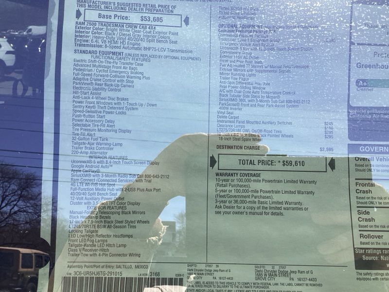 Bright White Clearcoat 2026 2500 Ram Tradesman 4D Crew Cab 4WD 8-Speed Automatic 6.4L V8 Price includes: $1000 - 2026 National Bonus Cash . Exp. 04/30/2026 $500 - 2026 National 2026 First Responder Bonus Cash . Exp. 01/04/2027
