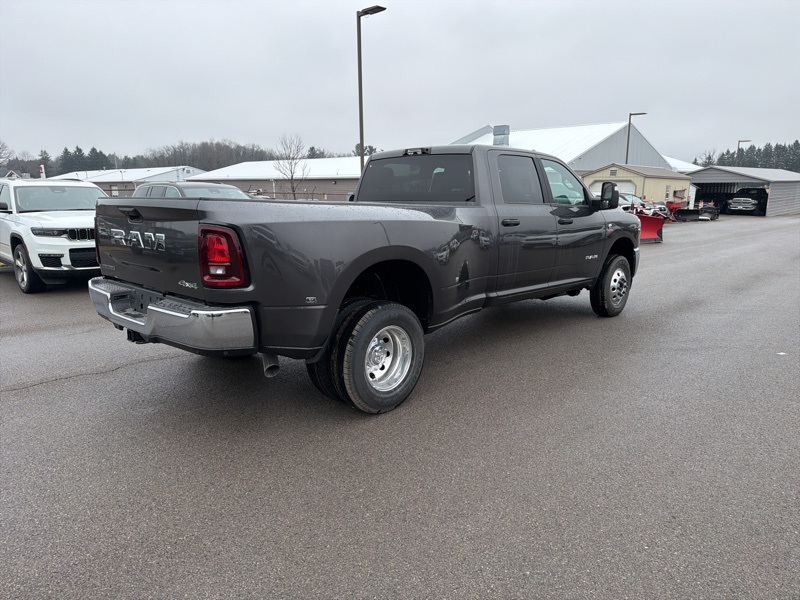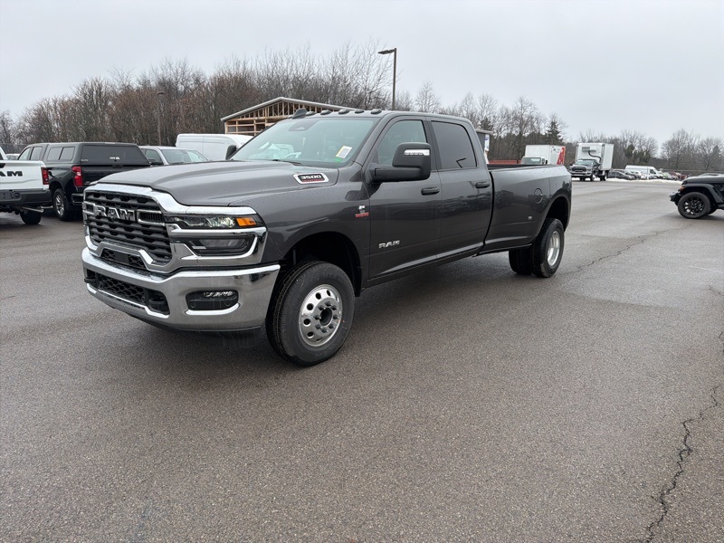 Big Horn Level 1 Plus Equipment Group (12" Touchscreen Display, 2 Way Rear Headrest Seat, 2nd Row in Floor Storage Bins, 4 Way Front Headrests, 40/20/40 Split Bench Seat, 4G LTE Wi-Fi Hot Spot, 9 Alpine Speakers with Subwoofer, Air Conditioning ATC with Dual Zone Control, Alexa Built-in, Apple CarPlay, Auto Power-Folding Mirrors, Auto-Dimming Rear-View Mirror, Black Exterior Mirrors, Cloth 40/20/40 Premium Bench Seat, Connected Travel and Traffic Services, Connectivity - US/Canada, Disassociated Touchscreen Display, Dual Glove Boxes, Emergency Vehicle Alert System (EVAS), Exterior Mirrors Courtesy Lamps, Exterior Mirrors with Heating Element, Exterior Mirrors with Supplemental Signals, Foam Bottle Insert (door Trim Panel), Folding Flat Load Floor Storage, Footwell Courtesy Lamp, For Details Visit DriveUconnect.com, For More Info, Call 800-643-2112, Forward and Reverse Utility Lights, Front Armrest with Cupholders, Front Center Seat Cushion Storage, Front Seat Back Map Pockets, Global Telematics Box Module, Glove Box Lamp, Google Android Auto, GPS Antenna Input, GPS Navigation, HD Radio, Integrated Voice Command with Bluetooth, LED Bed Lighting, Locking Lower Glove Box, Luxury Steering Wheel, Manual Adjust 4-Way Front Passenger Seat, Mirror Running Lights, MOPAR Deployable Bed Step, MOPAR Spray in Bedliner, Off-Road Information Pages, Power 2-Way Driver Lumbar Adjust, Power Adjust 8-Way Driver Seat, Power Adjust Mirrors, Power Heated Fold Telescopic Mirrors, Power Telescoping Mirrors, Power-Adjustable Convex Aux Mirrors, Radio: Uconnect 5 Navigation with 12.0" Display, Rear 60/40 Folding Seat, Rear Dome with on/Off Switch Lamp, Remote Start System, Remote USB Port - Charge Only, Selectable Tire Fill Alert, SiriusXM Radio Service, SiriusXM with 360L, Steering Wheel Mounted Audio Controls, Storage Tray, and Trailer Tow Pages), Cold Weather Group (Engine Block Heater and MOPAR Winter Front Grille Cover), Heated Seats and Wheel Group (Heated Front Seats and Heated Steering Wheel), Max Tow Package (5th Wheel/Gooseneck Towing Prep Group), Quick Order Package 24Z Big Horn, 4-Wheel Disc Brakes, 6 Speakers, 6000# Front Axle with Hub Extension, ABS brakes, Air Conditioning, Alloy wheels, AM/FM radio: SiriusXM, Apple CarPlay/Android Auto, Box and Rear Fender Clearance Lamps, Brake assist, Bumpers: chrome, Center Hub, Clearance Lamps, Cloth 40/20/40 Bench Seat, Compass, Dash Pass Thru Wire Circuits, Delay-off headlights, Driver door bin, Dual Alternators Rated At 480 Amps, Dual front impact airbags, Dual front side impact airbags, Dual Rear Wheels, Electronic Stability Control, Front anti-roll bar, Front Center Armrest w/Storage, Front fog lights, Front reading lights, Fully automatic headlights, Heated door mirrors, Illuminated entry, Instrument Panel Mounted Auxiliary Switches, Low tire pressure warning, Manual Adjust 4-Way Driver Seat, MOPAR Front and Rear Rubber Floor Mats, Nexen Brand Tires, Occupant sensing airbag, Outside temperature display, Overhead airbag, Overhead console, Panic alarm, ParkView Rear Back-Up Camera, Passenger door bin, Passenger vanity mirror, Power door mirrors, Power steering, Power windows, Radio data system, Radio: Uconnect 5 with 8.4" Display, Rear Folding Seat, Rear seat center armrest, Rear step bumper, Rear Wheelhouse Liners, Rear window defroster, Remote keyless entry, Speed control, Tachometer, Tilt steering wheel, Traction control, Trip computer, Turn signal indicator mirrors, Variably intermittent wipers, Voltmeter, Wheels: 17" x 6.0" Polished Aluminum, and Wheels: 18" x 8.0" Polished AluminuM. Recent Arrival! Granite Crystal Metallic Clearcoat 2026 Ram 3500 Big Horn 4WD 8-Speed Automatic 6.7L I6