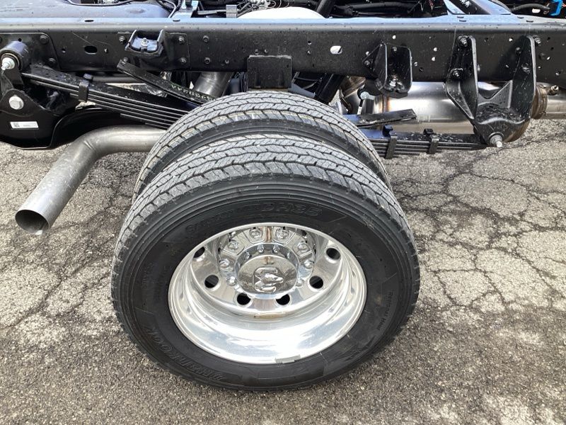 - 19.5 x 6-inch front and dual rear black steel wheels