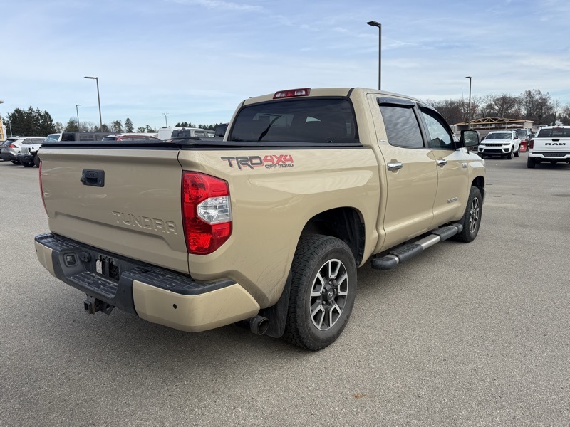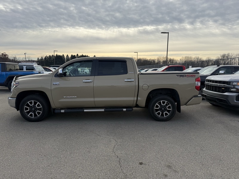 **BLUETOOTH HANDS FREE PHONE**, **LEATHER**, **MOONROOF**, **BACK-UP CAMERA**, **CLEAN CARFAX**, **FRONT AND REAR PARKING SONAR**, **PREMIUM JBL SOUND**, **BLINDSPOT DETECTION**, **HEATED FRONT SEATS**, **FACTORY NAVIGATION**, **REMOTE START**, **FACTORY RUNNING BOARDS**, **TRD OFF ROAD**, **18" TRD ALLOY WHEEL**, **7" TOUCHSCREEN RADIO**, **PRE COLLSION SYSTEM**, **LANE KEEP ASSIST**, **ADAPTIVE CRUISE CONTROL**, **AUTO HIGH BEAMS**, 4WD, Black w/Leather Seat Trim or Leather Seat Trim w/TRD Off-Road Package, 4-Wheel Disc Brakes, 4.30 Axle Ratio, 9 Speakers, ABS brakes, Active Cruise Control, Air Conditioning, Alloy wheels, AM/FM radio: SiriusXM, Auto High-beam Headlights, Auto-dimming Rear-View mirror, Automatic temperature control, Bedside TRD Off Road Decal, Blind Spot Monitor w/Rear Cross Traffic Alert, Brake assist, CD player, Color-Keyed Rear Bumper, Compass, Delay-off headlights, Driver door bin, Driver vanity mirror, Dual front impact airbags, Dual front side impact airbags, Electronic Stability Control, Entune App Suite, Exterior Parking Camera Rear, Front & Rear Parking Assist Sonar, Front anti-roll bar, Front Bucket Seats, Front Center Armrest, Front dual zone A/C, Front fog lights, Front reading lights, Front wheel independent suspension, Fully automatic headlights, Garage door transmitter: HomeLink, Glass Breakage Sensors (GBS), Heated door mirrors, Heated Front Bucket Seats, Heated front seats, Illuminated entry, Illuminated Entry System, Knee airbag, Leather Seat Trim (LB), Leather Seat Trim w/TRD Off Road Package, LED Headlights w/Smoked Housings, Limited Premium Package, Low tire pressure warning, Navigation System, Occupant sensing airbag, Outside temperature display, Overhead airbag, Overhead console, Panic alarm, Passenger door bin, Passenger vanity mirror, Power door mirrors, Power driver seat, Power passenger seat, Power steering, Power Tilt & Slide Moonroof w/Sliding Sunshade, Power windows, Power Windows w/Front Auto Up/Down, Radio data system, Radio: Entune Premium Audio AM/FM w/HD Radio & CD, Radio: Entune Premium JBL Audio AM/FM/HD Radio/CD, Rear reading lights, Rear seat center armrest, Rear step bumper, Rear window defroster, Remote keyless entry, Security system, SIRIUSXM Satellite Radio, Speed control, Speed-sensing steering, Split folding rear seat, Steering wheel mounted audio controls, Tachometer, Telescoping steering wheel, Tilt steering wheel, Traction control, Trail-Tuned Bilstein Shock Absorbers, TRD Off Road Floor Mats, TRD Off Road Package, Trip computer, Variably intermittent wipers, Voltmeter, Wheels: 18" x 8J Split 5-Spoke TRD Off Road Alloy. Recent Arrival! Clean CARFAX. Quicksand 2019 Toyota Tundra Limited CrewMax 4WD 6-Speed Automatic Electronic i-Force 5.7L V8 DOHC 32V LEV