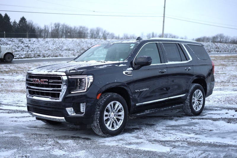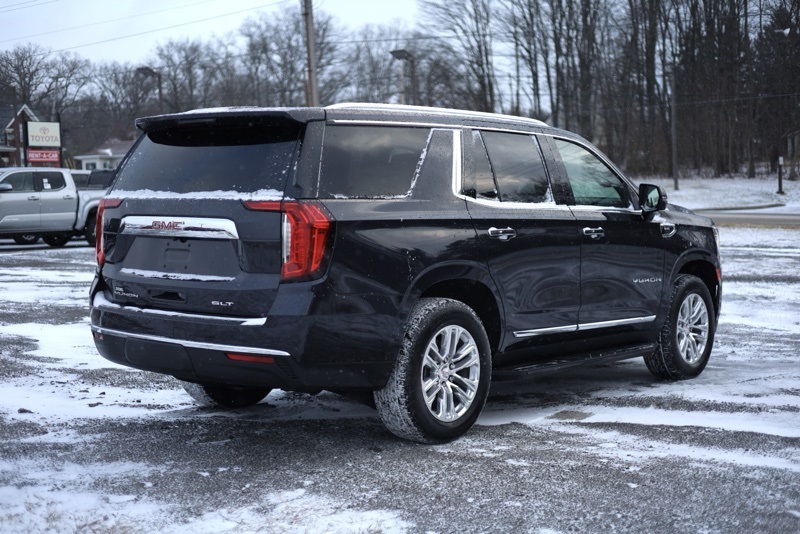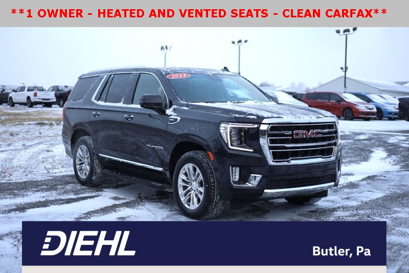 **HEATED AND COOLED FRONT SEATS**, **CLEAN CARFAX ONE OWNER**, **THREE ROW SEATING**, **SECOND BUCKET SEATS****, **PANORAMIC MOONROOF**, **ADAPTIVE CRUISE CONTROL**, **ENHANCED EMERGENCY BRAKING**, **HEATED STEERING WHEEL**, **MEMORY DRIVER SEAT**, **POWER TILT AND TELESCOPING WHEEL**, **HEATED SECOND ROW**, **HD SURROUND VISION**, **SLT PREMIUM PACKAGE**, **BOSE PREMIUM SOUND**, **FACTORY REMOTE START**, **POWER LIFTGATE**, **10.2" TOUCHSCREEN RADIO**, **FRONT AND REAR PARKING SONAR**, **20" POLISHED ALUMINUM WHEELS**, 4WD, 12-Way Power Seat Adjusters, 2 Presets For Outside Rearview Mirrors, 2 Presets For Power Driver Seat, 3.23 Rear Axle Ratio, 3rd Row 60/40 Power-Folding Split-Bench Seat, 3rd row seats: split-bench, 4-Wheel Disc Brakes, 9 Speakers, ABS brakes, Adaptive Cruise Control, Air Conditioning, Alloy wheels, AM/FM radio: SiriusXM with 360L, AM/FM Stereo, Apple CarPlay/Android Auto, Auto High-beam Headlights, Auto-dimming Rear-View mirror, Automatic Emergency Braking, Automatic temperature control, Bodyside moldings, Bose 9-Speaker Stereo Audio System Feature, Brake assist, Bright Chrome Bodyside Moldings, Bright Front & Rear Door Sill Plates, Bumpers: body-color, Chrome Door Handles w/Body-Color Strip, Compass, Delay-off headlights, Driver door bin, Driver vanity mirror, Dual front impact airbags, Dual front side impact airbags, Dual-Pane Panoramic Power Sunroof, Electronic Stability Control, Emergency communication system: OnStar and GMC connected services capable, Enhanced Automatic Emergency Braking, Following Distance Indicator, Forward Collision Alert, Four wheel independent suspension, Front & Rear Park Assist, Front anti-roll bar, Front Bucket Seats, Front Center Armrest, Front dual zone A/C, Front fog lights, Front Pedestrian Braking, Front reading lights, Fully automatic headlights, Garage door transmitter, Hands-Free Power Programmable Rear Liftgate, HD Surround Vision, Heated 2nd Row Outboard Position Seats, Heated door mirrors, Heated Driver & Front Passenger Seats, Heated front seats, Heated Steering Wheel, Illuminated entry, Inside Rear-View Auto-Dimming Mirror, IntelliBeam Automatic High Beam On/Off, Lane Change Alert w/Side Blind Zone Alert, Lane Keep Assist w/Lane Departure Warning, Low tire pressure warning, Memory seat, Navigation System, Occupant sensing airbag, Outside Heated Power-Adjustable Mirrors, Outside temperature display, Overhead airbag, Overhead console, Panic alarm, Passenger door bin, Passenger vanity mirror, Perforated Heated & Ventilated Dr & Frt Pass Seats, Perforated Leather-Appointed Seating, Power door mirrors, Power driver seat, Power Liftgate, Power passenger seat, Power Release 2nd Row 60/40 Split-Folding Bench Seat, Power Release 2nd Row Bucket Seats, Power steering, Power Tilt & Telescopic Steering Column, Power windows, Preferred Equipment Group 4SA, Premium Smooth Ride Suspension, Rain sensing wipers, Rear air conditioning, Rear anti-roll bar, Rear Cross Traffic Alert, Rear Pedestrian Alert, Rear reading lights, Rear seat center armrest, Rear window defroster, Rear window wiper, Remote keyless entry, Roof rack: rails only, Safety Alert Seat, Security system, SiriusXM w/360L, SLT Luxury Package, SLT Premium Package, Speed control, Speed-sensing steering, Split folding rear seat, Spoiler, Steering wheel mounted audio controls, Tachometer, Telescoping steering wheel, Tilt steering wheel, Traction control, Trip computer, Universal Home Remote, Variably intermittent wipers, Ventilated front seats, Voltmeter, Wheels: 20" x 9" 6-Spoke Polished Aluminum, Wireless Charging. CARFAX One-Owner. Clean CARFAX. Titanium Rush Metallic 2024 GMC Yukon SLT 4WD 10-Speed Automatic with Overdrive EcoTec3 5.3L V8
