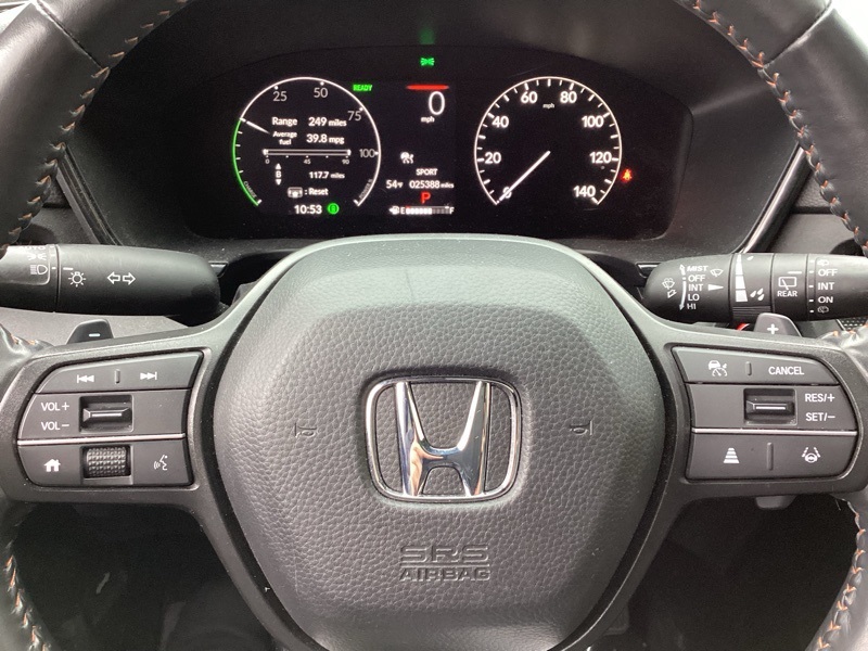 2.0L I4 DOHC 16V, 4-Wheel Disc Brakes, 4.438 Axle Ratio, 8 Speakers, ABS brakes, Adaptive Cruise Control: Adaptive Cruise Control (ACC) with Low-Speed Follow, Air Conditioning, Alloy wheels, AM/FM radio: SiriusXM, Auto High-beam Headlights, Auto-dimming Rear-View mirror, Automatic temperature control, Blind Spot Information (BSI) System warning, Brake assist, Bumpers: body-color, Compass, Delay-off headlights, Driver door bin, Driver vanity mirror, Dual front impact airbags, Dual front side impact airbags, Electronic Stability Control, Exterior Parking Camera Rear, Four wheel independent suspension, Front anti-roll bar, Front Bucket Seats, Front Center Armrest, Front dual zone A/C, Front reading lights, Fully automatic headlights, Heated door mirrors, Heated Front Bucket Seats, Heated front seats, Illuminated entry, Knee airbag, Leather Seat Trim, Leather Shift Knob, Leather steering wheel, Low tire pressure warning, Memory seat, Occupant sensing airbag, Outside temperature display, Overhead airbag, Overhead console, Panic alarm, Passenger door bin, Passenger vanity mirror, Power door mirrors, Power driver seat, Power Liftgate, Power moonroof, Power passenger seat, Power steering, Power windows, Radio data system, Radio: 320-Watt AM/FM/HD/SiriusXM Audio System, Rear anti-roll bar, Rear reading lights, Rear seat center armrest, Rear side impact airbag, Rear window defroster, Rear window wiper, Remote keyless entry, Security system, Speed control, Speed-sensing steering, Speed-Sensitive Wipers, Split folding rear seat, Spoiler, Steering wheel mounted audio controls, Telescoping steering wheel, Tilt steering wheel, Traction control, Trip computer, Turn signal indicator mirrors, Variably intermittent wipers, Wheels: 18" Berlina Black Alloy, Wireless Apple CarPlay/Wireless Android Auto. 2024 Honda CR-V Hybrid Sport-L AWD eCVT 2.0L I4 DOHC 16V