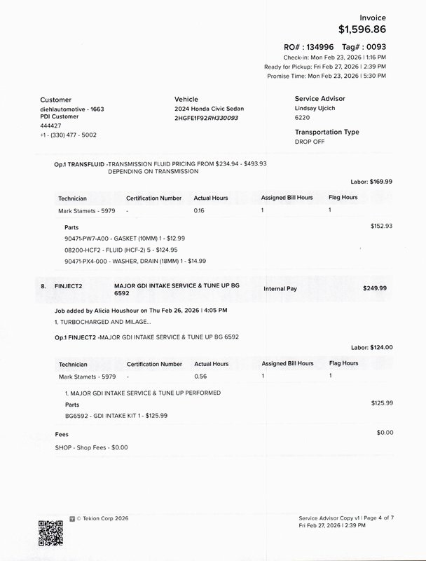- 1.5L I-4 gasoline direct injection, DOHC, VTEC variable valve control, intercooled turbo, premium unleaded, engine with 180HP