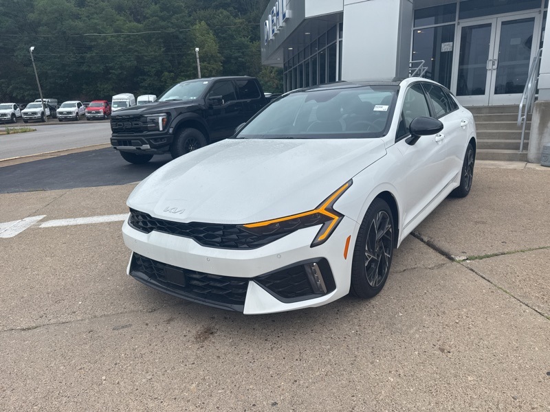 **BACK UP SENSOR**, *KEYLESS START*, **BACK UP CAMERA**, **ANDROID AUTO**, **APPLE CAR PLAY**, **HEATED SEATS**, **LEATHER**, **MOONROOF**, **NAVIGATION**, **POWER DRIVERS SEAT**, **PREMIUM AUDIO**. Certified. Snow White Pearl 2025 Kia K5 GT-Line FWD 8-Speed Automatic I4