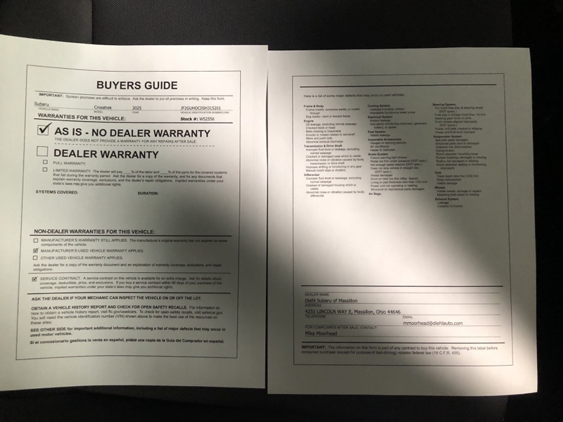 *Confirm any warranty information with dealer before purchase.Roadside warranty